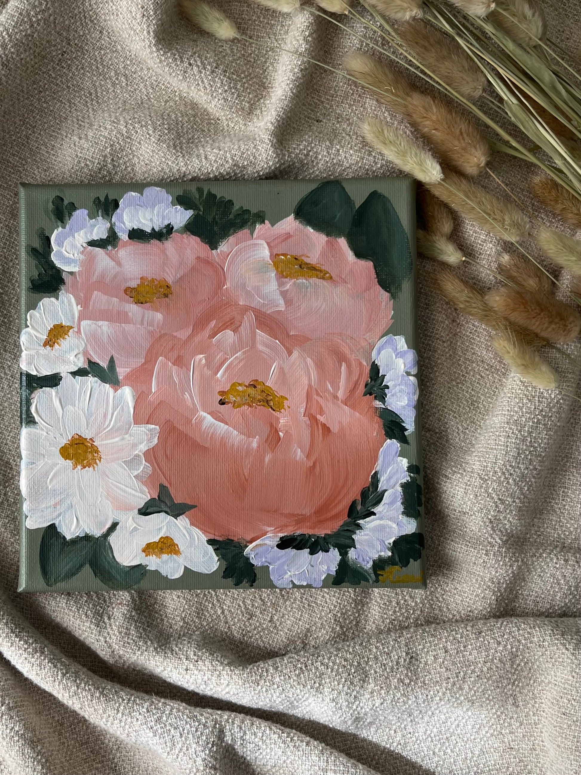 These flower painting were a challenge that I challenged myself to paint every day in December 2022, it was very difficult, I did this so I could practice painting flowers. Many of the paintigns that I painted on December 2022 I no longer have, the ones I have they are for sale here on the website.
