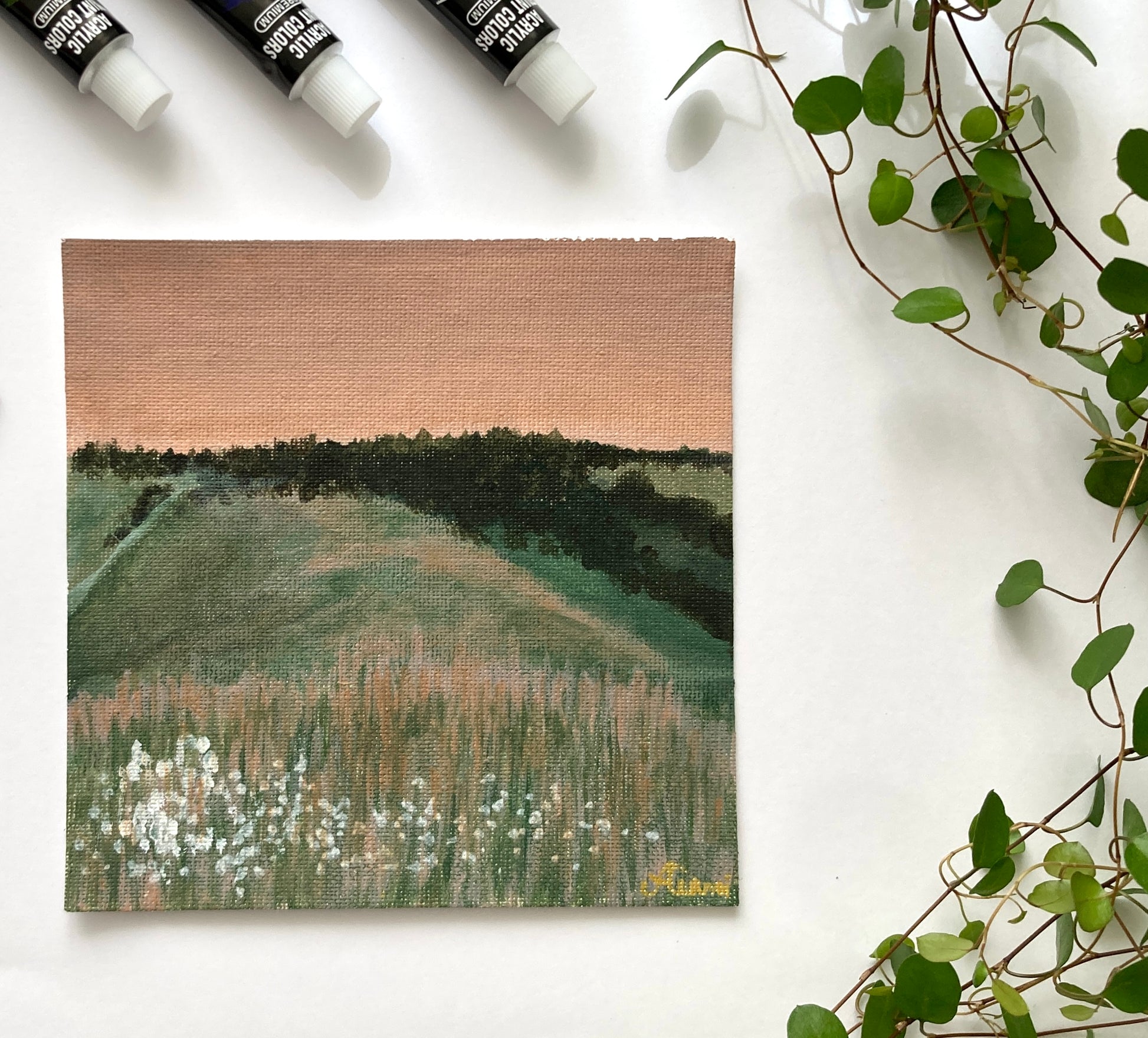 These landscapes were a challenge. I challenged myself to paint every day in December 2023, it was very difficult becouse of a new job that was exhausting, I did this so I could practice painting landscapes that I always wanted to do. I love colorful landscapes, especially sunsets.