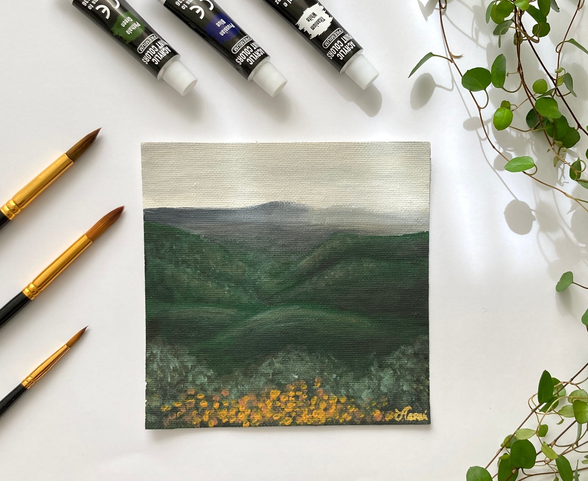 These landscapes were a challenge. I challenged myself to paint every day in December 2023, it was very difficult becouse of a new job that was exhausting, I did this so I could practice painting landscapes that I always wanted to do. I love colorful landscapes, especially sunsets.