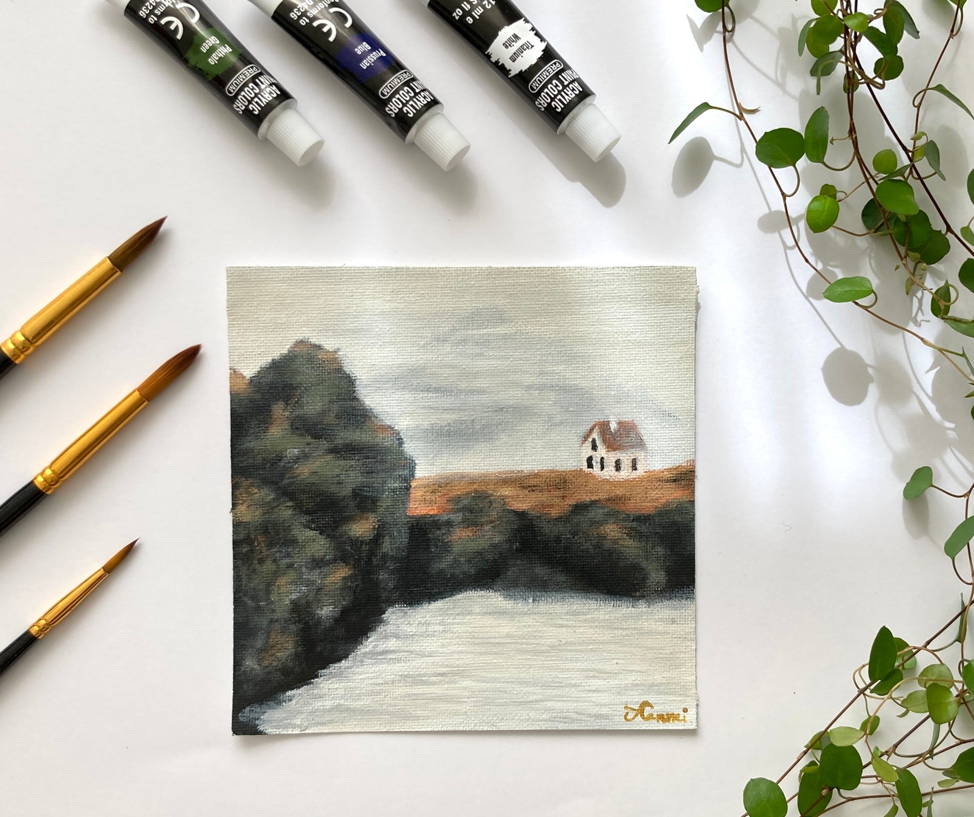 These landscapes were a challenge. I challenged myself to paint every day in December 2023, it was very difficult becouse of a new job that was exhausting, I did this so I could practice painting landscapes that I always wanted to do. I love colorful landscapes, especially sunsets.