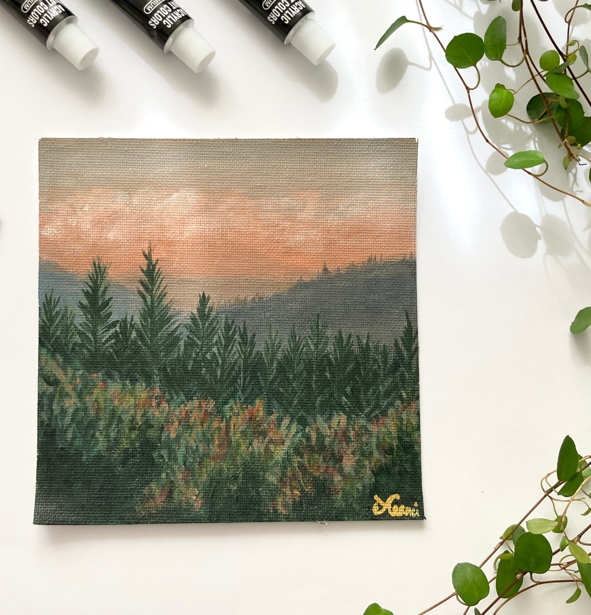 These landscapes were a challenge. I challenged myself to paint every day in December 2023, it was very difficult becouse of a new job that was exhausting, I did this so I could practice painting landscapes that I always wanted to do. I love colorful landscapes, especially sunsets.