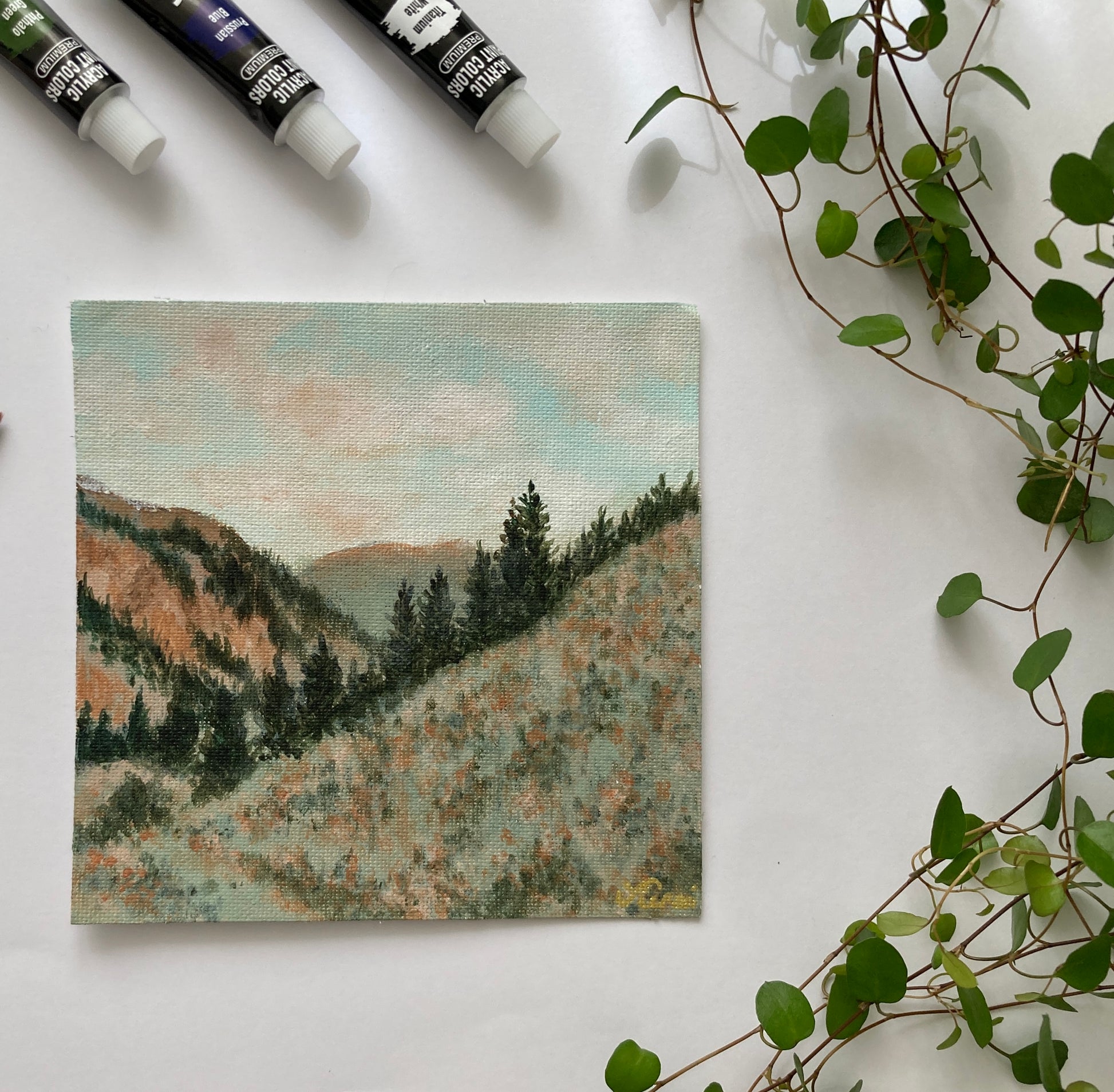 These landscapes were a challenge. I challenged myself to paint every day in December 2023, it was very difficult becouse of a new job that was exhausting, I did this so I could practice painting landscapes that I always wanted to do. I love colorful landscapes, especially sunsets.