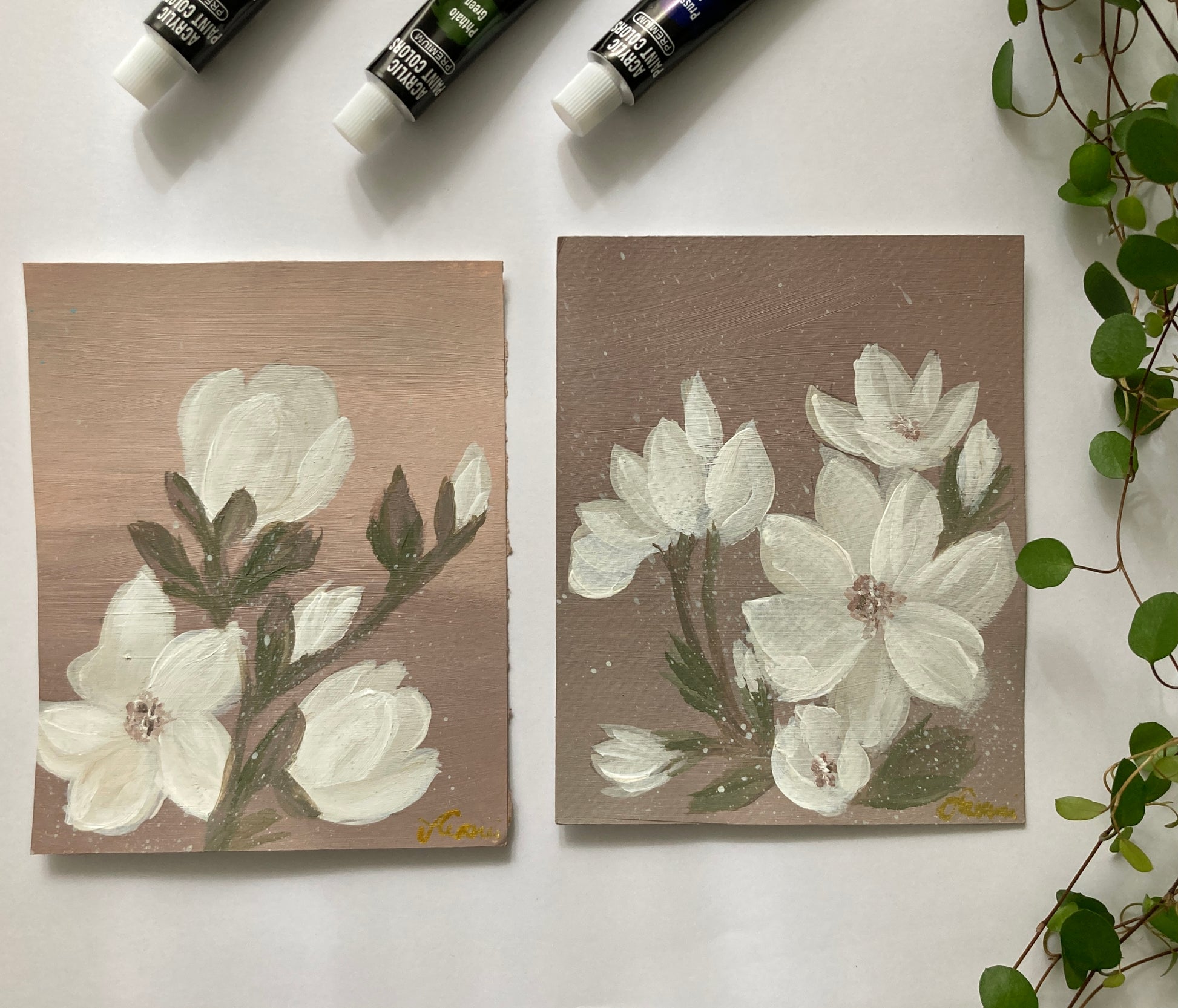 White flower on old pink - set of two